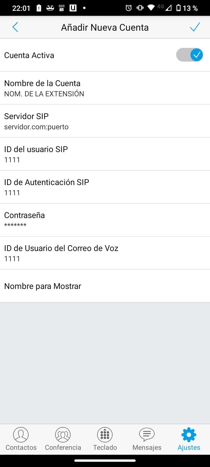 GSWAVE -> Ajustes -> Opciones de Cuenta -> + -> Cuenta SIP